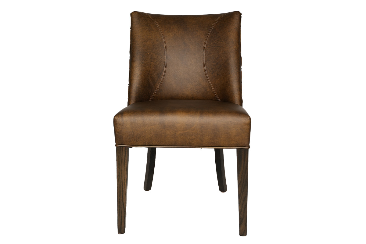 GRACE SIDE CHAIR IN LEATHER 332 COLOR SHELBY ON SEAT AND BACK NO DISTRESSING WOOD IN FURNITURE DIRECT OAK FINISH: SOLID STAIN 402 MOCHA WITH NAILHEADS IN RUSTSee Details