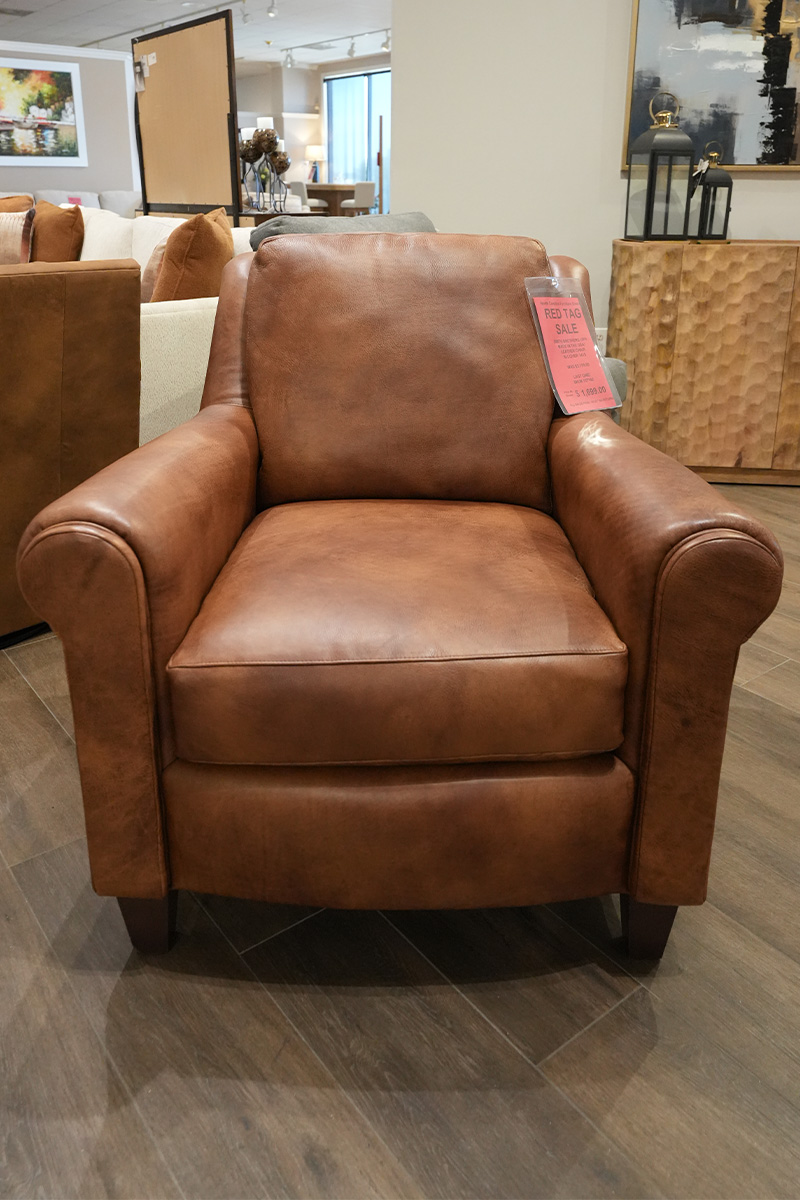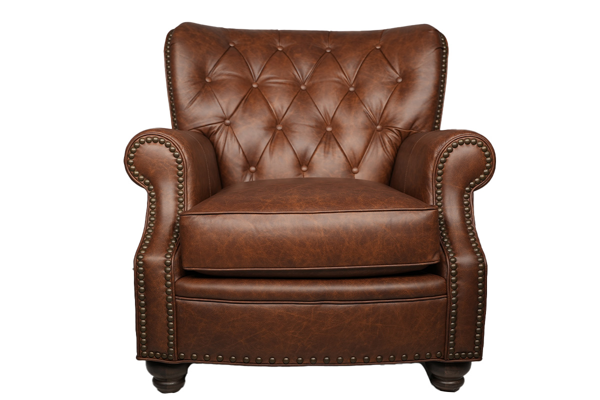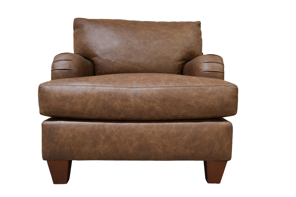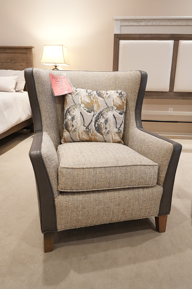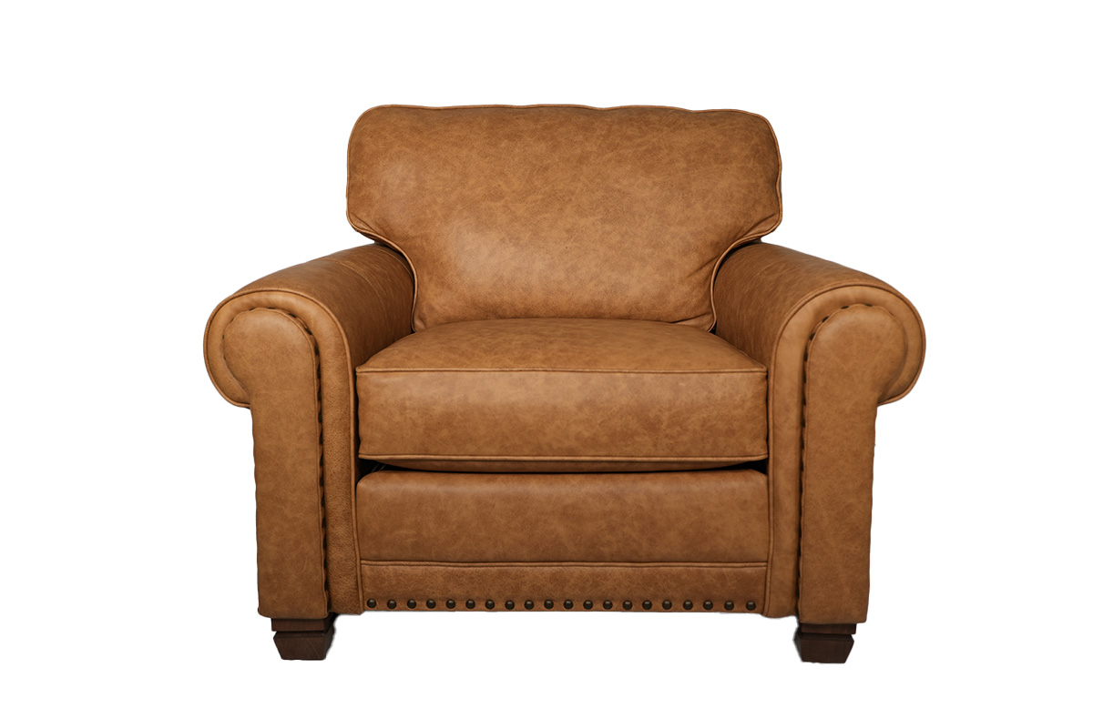 CHAIR IN FABRIC COMBO BACK/WELT/BAND LEATHER: 1810 WITH INSIDE COVER: 450904; PILLOW COVER: 487504 WITH DOWN FILL; WOOD FINISH: DISTRESSED PECAN NO NAILSSee Details