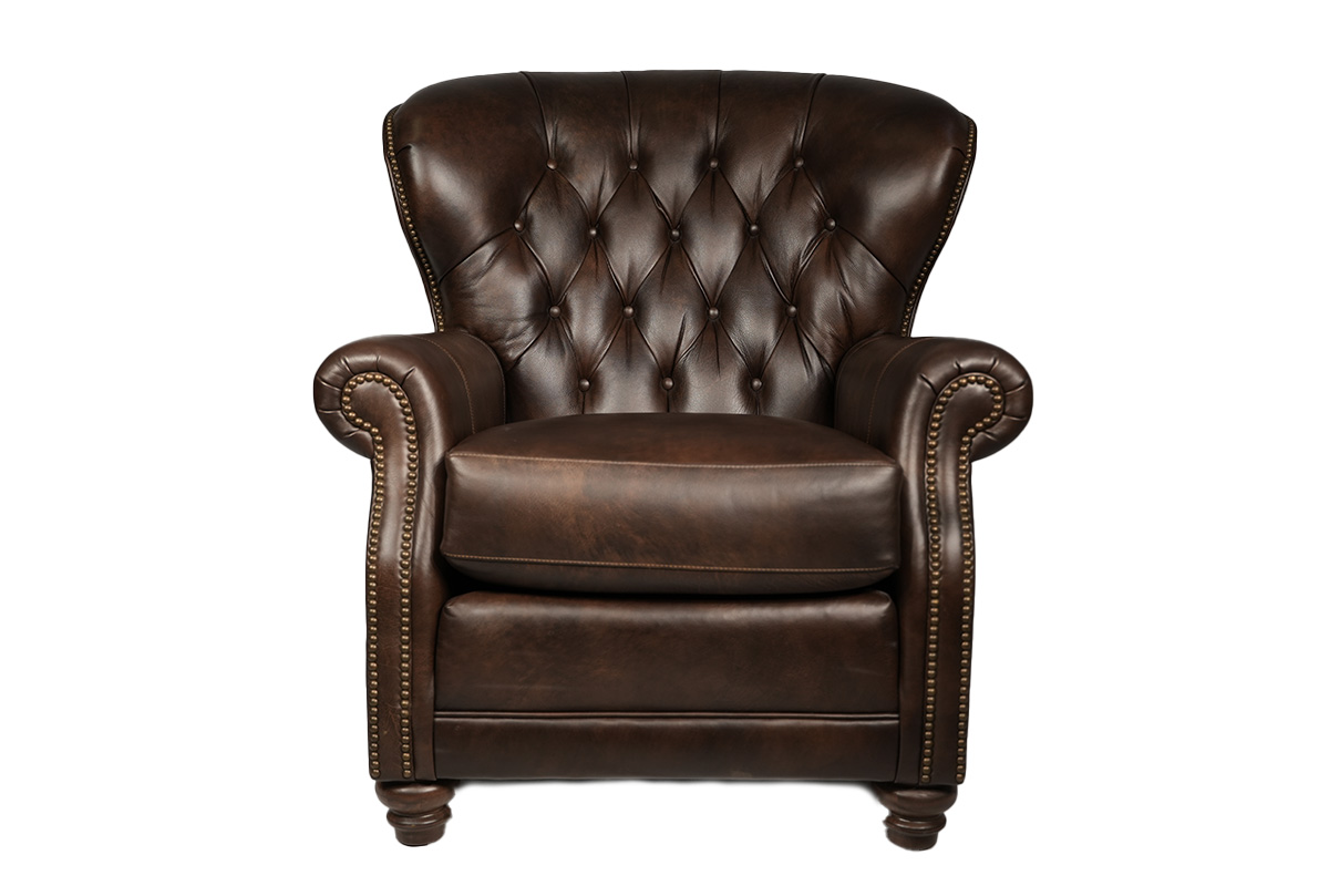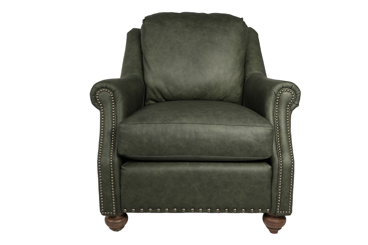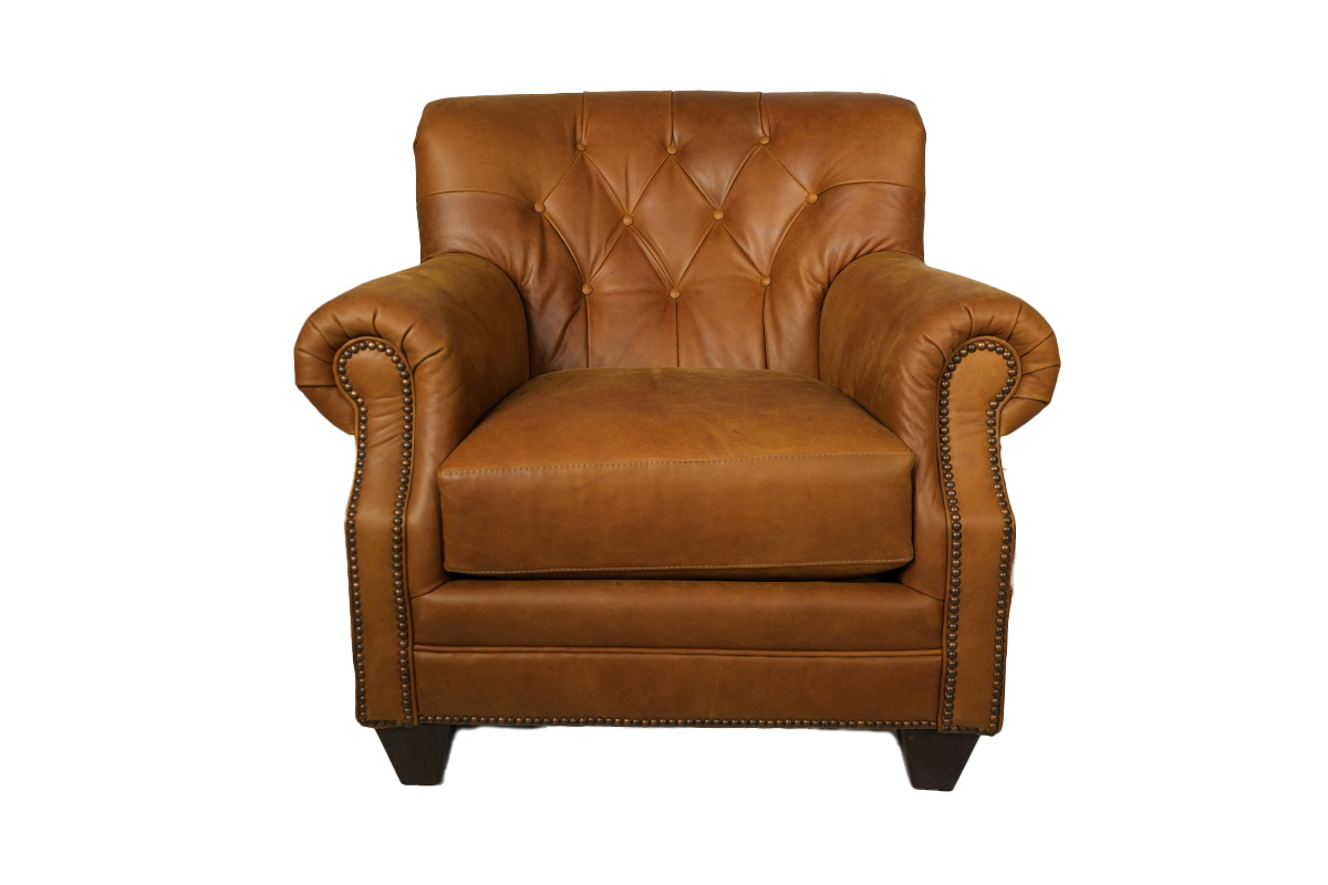 CHAIR IN LEATHER: 9220 GRADE 3 WITH WOOD LEG FINISH IN SHAGBARK AND NAILS: RB RUBBED BRONZESee Details
