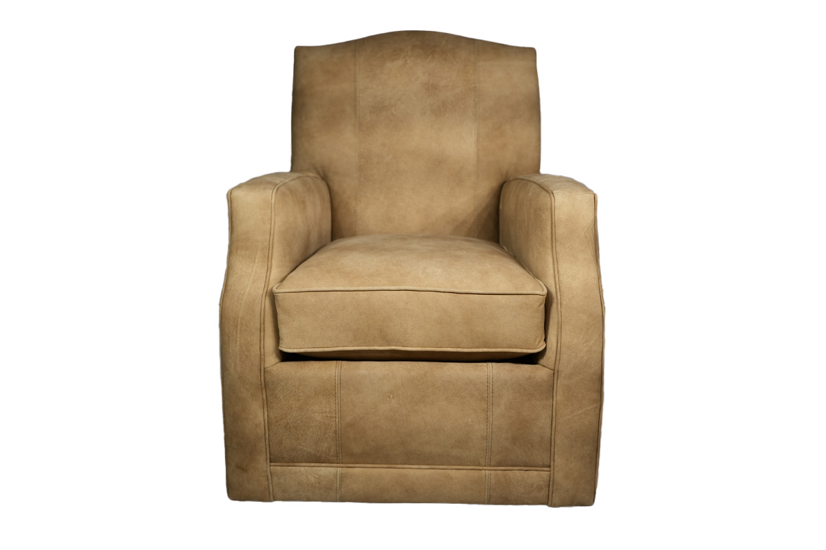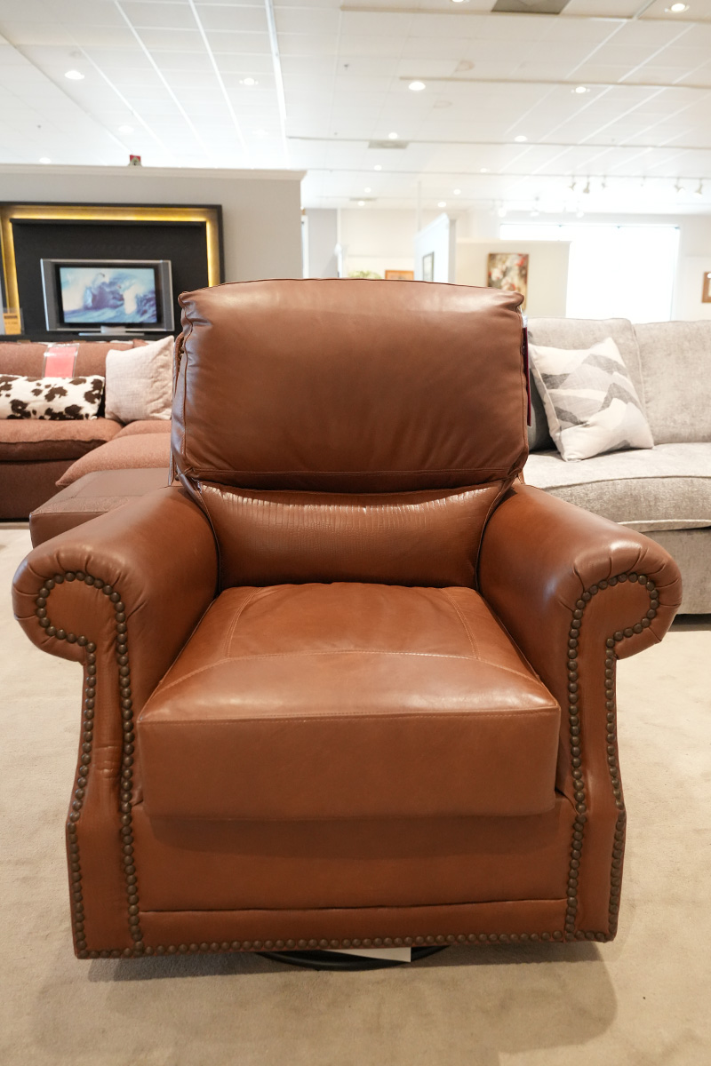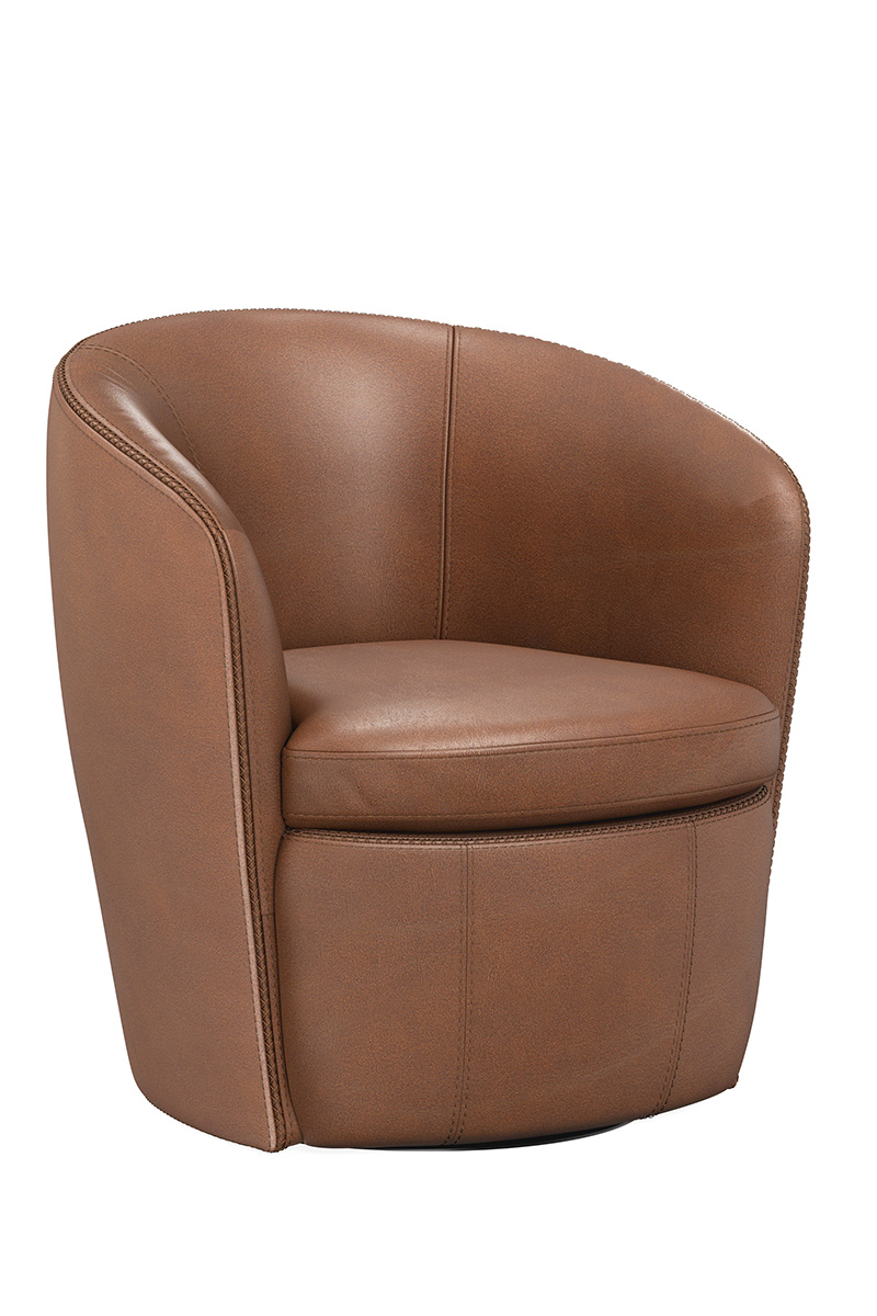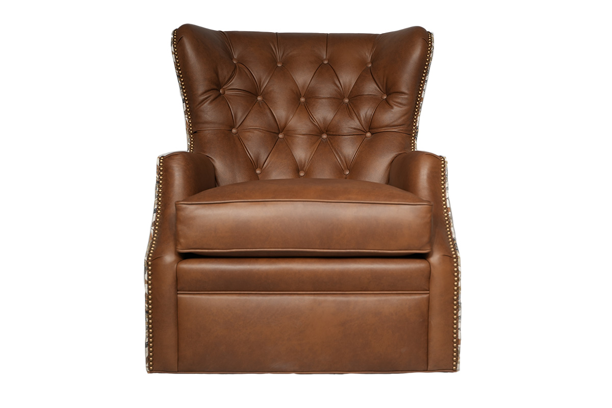 SWIVEL CHAIR IN LEATHER: 2313 GRADE 1 WITH NAILS: ANTIQUE BRASS CUSTOMER COLLAGE OPTION: OUTSIDE ARMS FABRIC 493104; OUTSIDE BACK FABRIC: 493104See Details