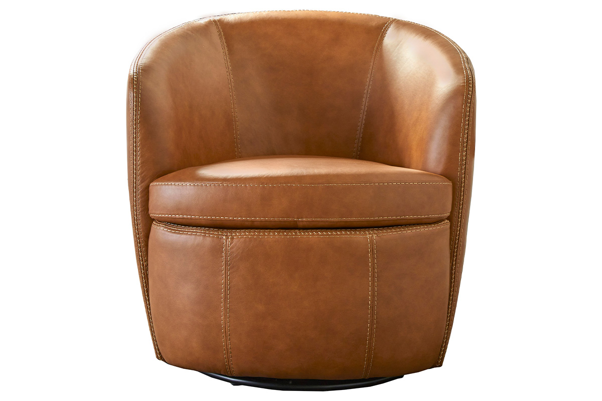 SWIVEL CHAIR IN LEATHER: 2313 GRADE 1 WITH NAILS: ANTIQUE BRASS CUSTOMER COLLAGE OPTION: OUTSIDE ARMS FABRIC 493104; OUTSIDE BACK FABRIC: 493104See Details