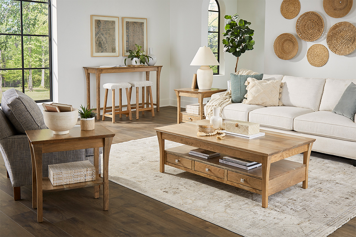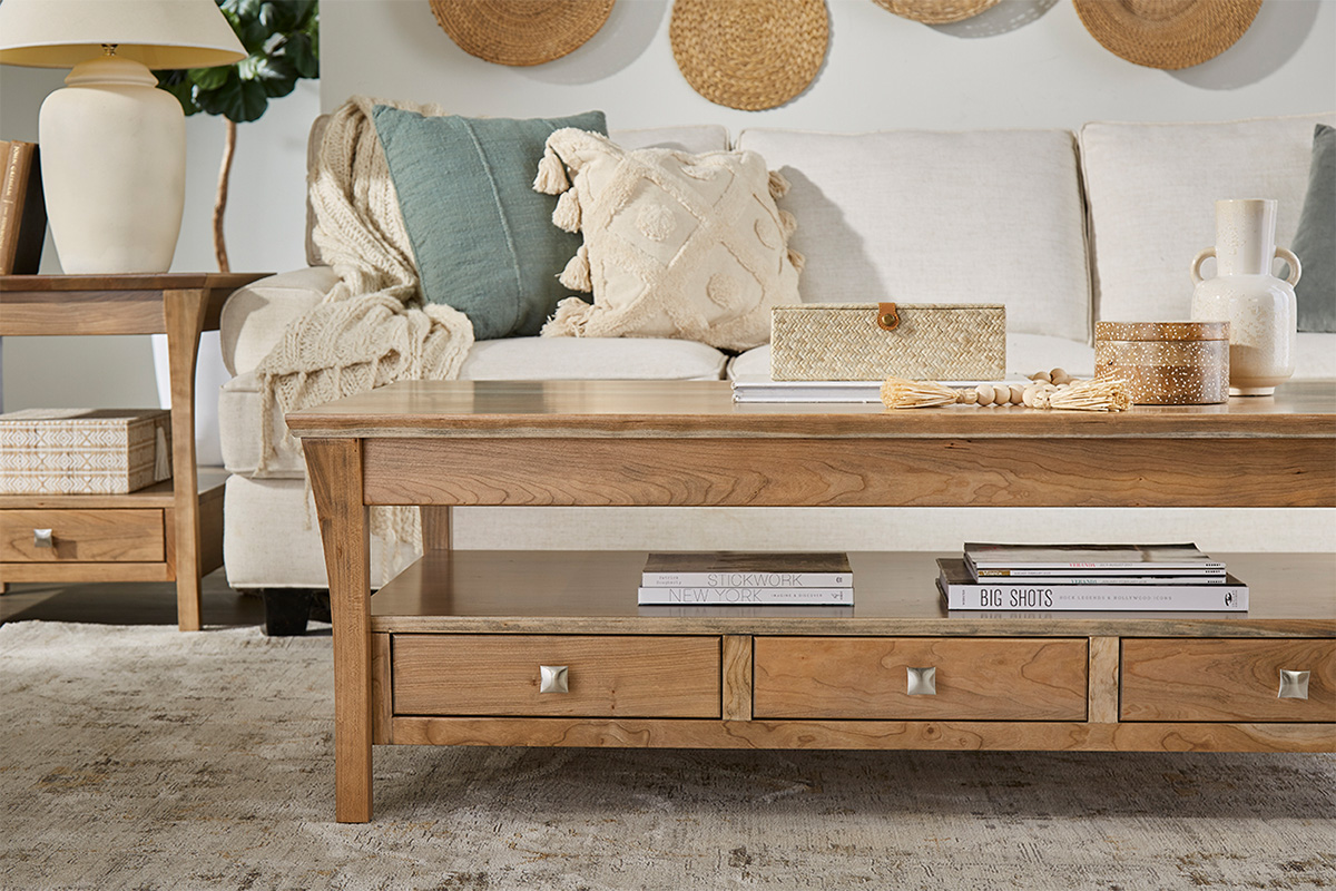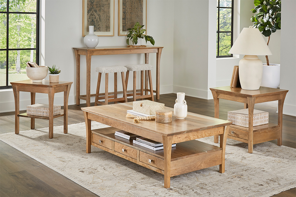 MARCO OCCASIONAL RECTANGLE COFFEE TABLE IN FURNITURE DIRECT CHERRY. STANDARD HARDWARE NO DISTRESSING IN STOLID STAIN 400 BELAIR