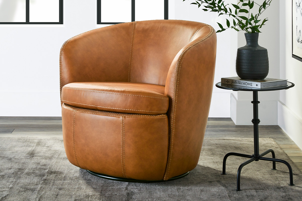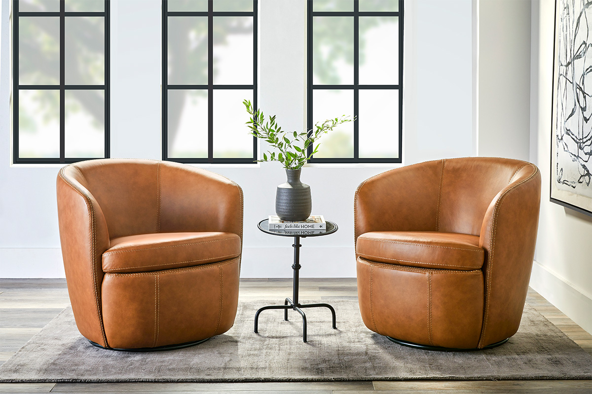 SWIVEL CLUB CHAIR – BAROLO IN VINTAGE CARAMEL