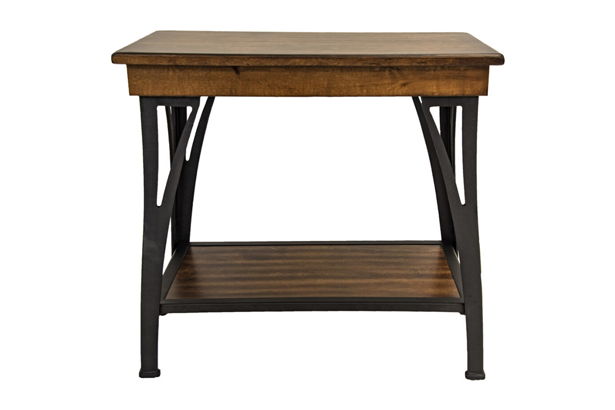 THE DISTRICT CHAIRSIDE TABLE IN SOLID BIRCH AND CAST METAL IN COOL COPPER FINISH