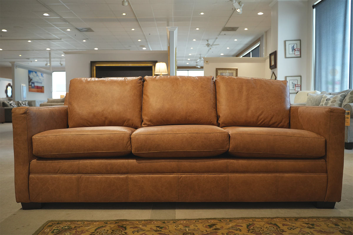 QUEEN SLEEPER WITH TRACK ARMS IN ALL LEATHER OMAHA KODIAK WITH WOOD LEGS IN ESPRESSO FINISHSee Details